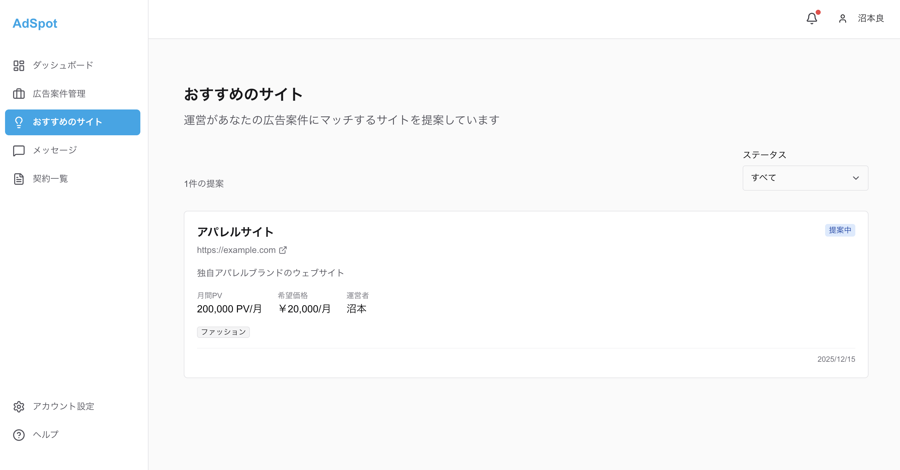 運営スタッフがあなたに合ったウェブサイトを厳選してご提案。興味があれば、そのまま交渉を開始できます。